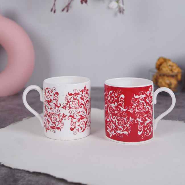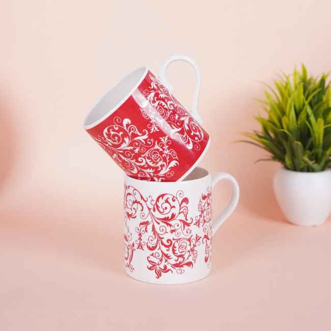 The Balmoral Scarlet Dance mugs feature a dynamic design with vibrant red and white hues. These mugs add a touch of bold elegance to your drinkware collection, perfect for making a statement.