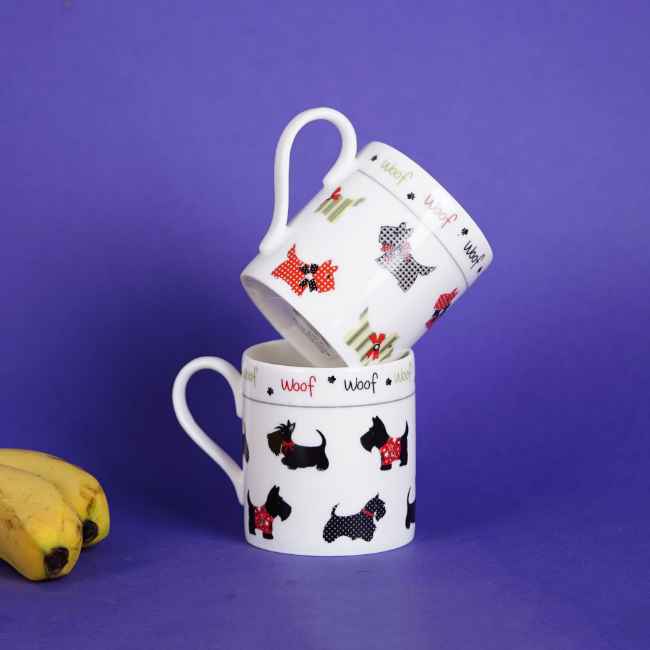 The Balmoral Scottie Dogs mug brings playful charm with its adorable Scottie dog illustrations. Ideal for dog lovers, this mug adds a touch of whimsy and warmth to your drink, brightening up your day.