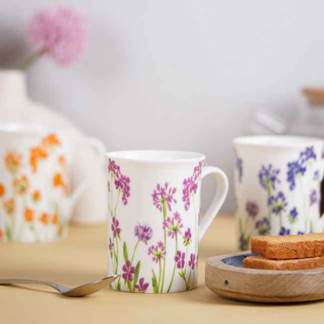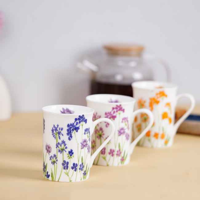 The Panama Baverly Floral mugs showcase a trio of elegant floral designs. These mugs bring a touch of garden sophistication to your table, ideal for enjoying a refined tea or coffee.
